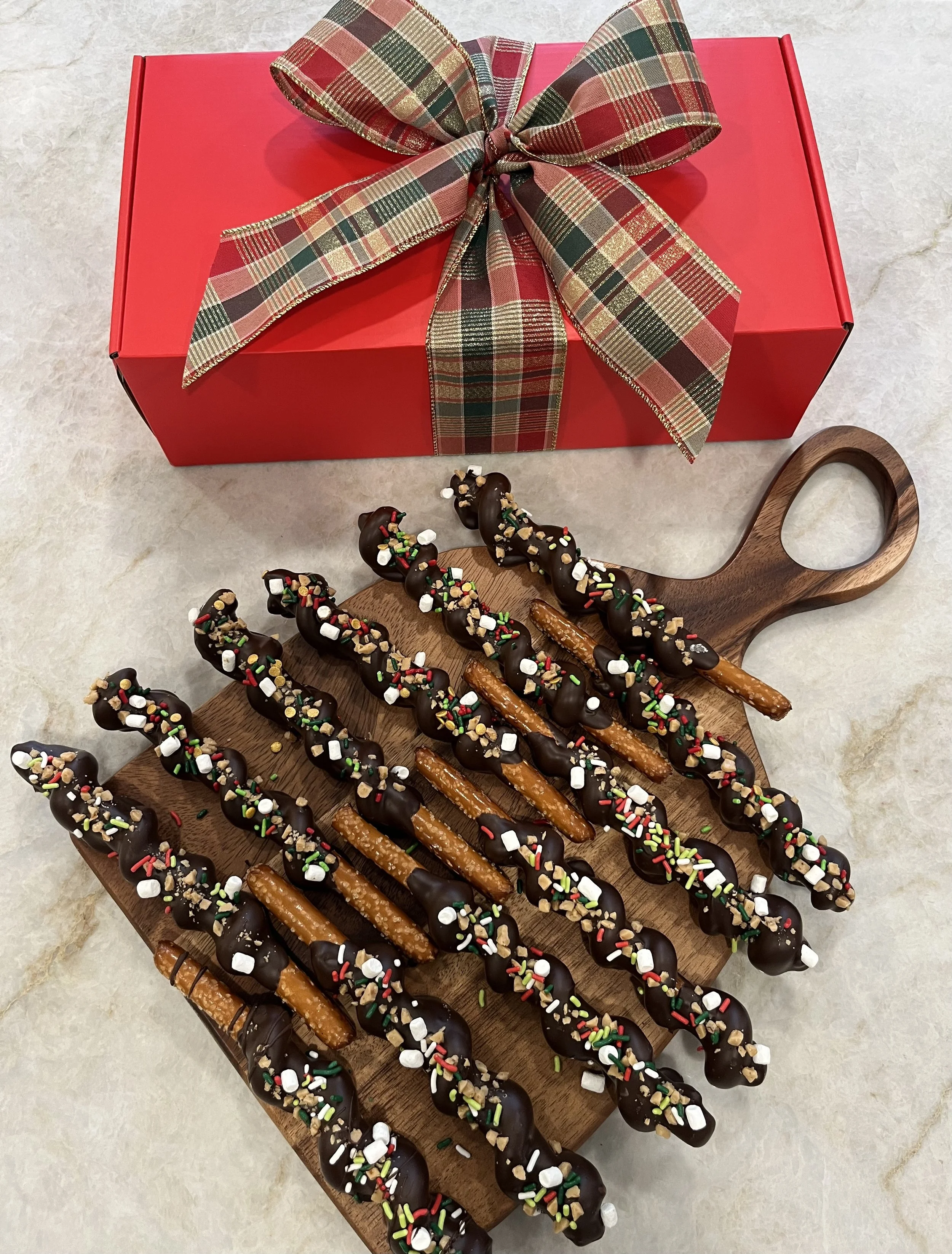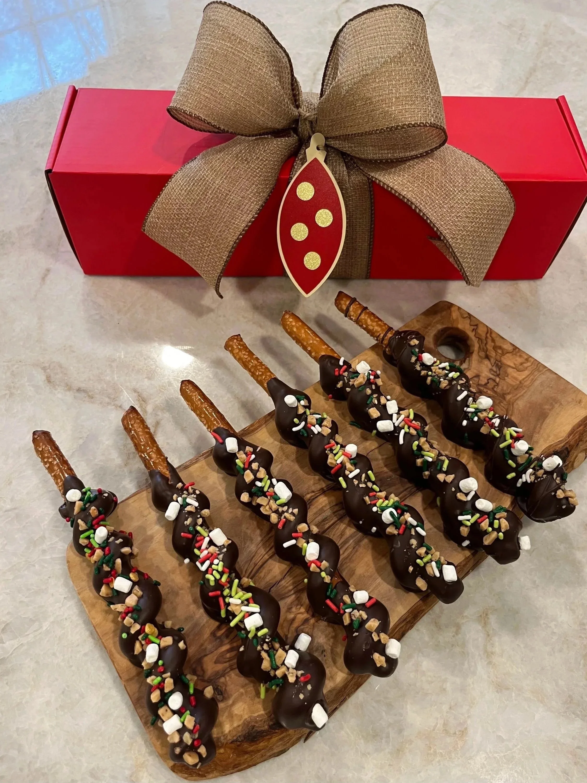 Pretzel Orders Categories: All Pretzel Orders (Local) Pretzel Orders All | Pretzel Orders (Local) | Box of Six - The Single $34.99 Milk Dark Mix or Milk and Dark Add To Cart Added! Box of Twelve - The Double $59.99 Milk Dark Mix of Milk and Dark Add To Cart Added! Box of Twelve - Special Pink Edition $59.99 Milk Dark Mix or Milk and Dark Add To Cart Added! Special Order Pretzels (25 +) $3.99 Milk Chocolate Dark Chocolate Mix of Milk and Dark Chocolate Special Orders Added! The Local ~ Bouquet of Twenty Four $99.99 Milk Chocolate Dark Chocolate Mixed Chocolate Add To Cart Added! Box of Four Pretzels - Local pickup Only - Northville, Michigan area $24.99 Milk Chocolate Dark Chocolate Mix of Milk and Dark Chocolate Add To Cart Added!